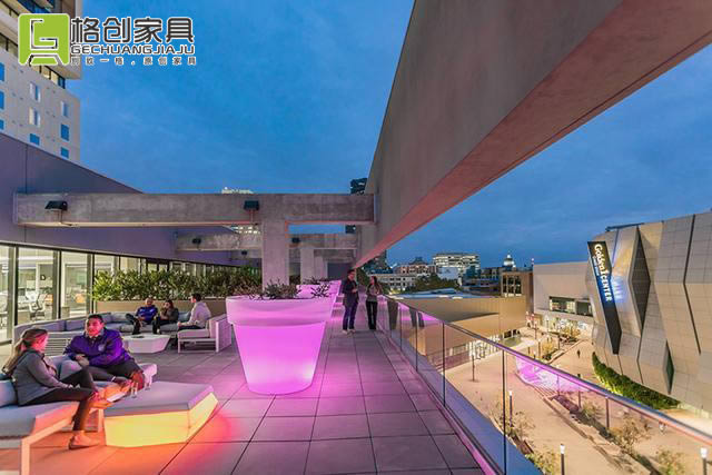 設(shè)計(jì)團(tuán)隊(duì)與國(guó)王隊(duì)的項(xiàng)目團(tuán)隊(duì)緊密合作,在室內(nèi)創(chuàng)建一個(gè)360度的鳥(niǎo)瞰動(dòng)線(xiàn),站在配有水吧的大廳陽(yáng)臺(tái)上,可以看到帶有泳池的酒店套房,以及下方街道上的露天廣場(chǎng)。