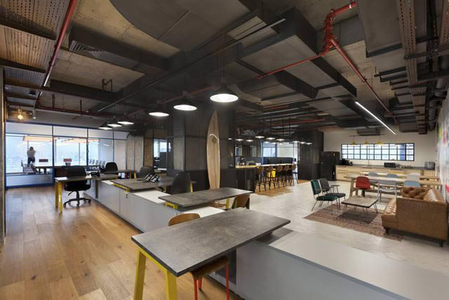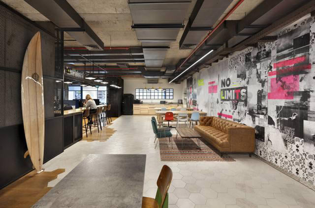 辦公室主要服務(wù)于內(nèi)部員工,因此這里沒有常規(guī)的接待前臺。公司的老板是一位旅游和沖浪愛好者,因此設(shè)計團隊意欲為他們創(chuàng)建一個有趣而自由的工作氛圍,一個可以度過悠閑愜意時光的辦公空間。