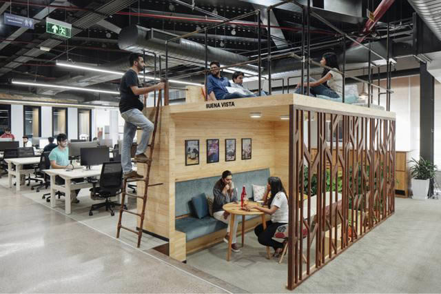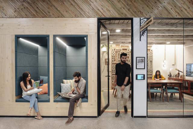 3、培養社區意識。以象征性的空間去表達特定功能非常重要,但確保員工之間的互動和建立社區意識也是非常必要的。設計團隊以印度當地極具特色的文化去塑造特定的功能空間,比如起源于印度的Chai奶茶文化而設計的工作吧、壁龕式入墻座位等。